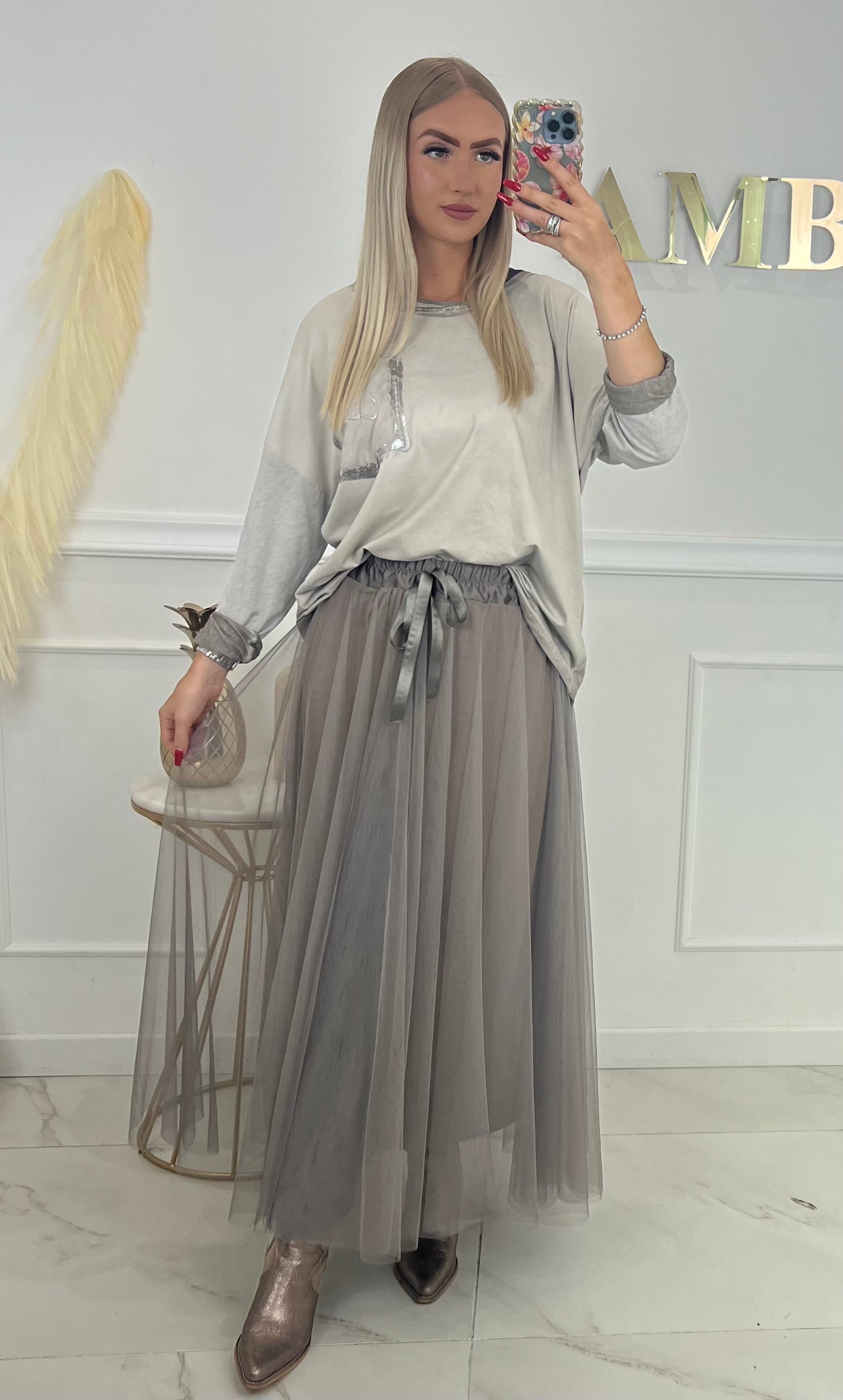 JUPE TULLE - TAUPE